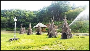 소나기마을의 중앙 공장 분수대는 언제 봐도 시원하게 뿜어줍니다. 이름 그대로 소나기를 표현해놓았습니다. 맑은 하늘에서도 분수대로 소나기처럼 표현을 잘해두었네요.